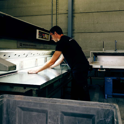 We streven er naar om het gebruik van chemicaliën, zowel op als rondom de pers, te reduceren tot een absoluut minimum.